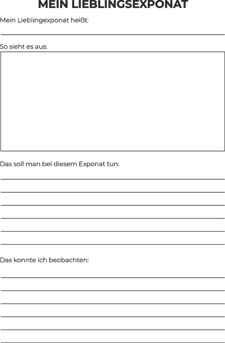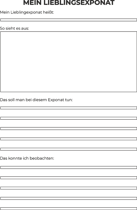 Hier findest Du verschiedene Materialien zum herunterladen, mit denen sich Deine Schüler*innen intensiv mit einem Exponat auseinandersetzen können. Diese "Arbeitsblätter" sind lediglich Vorschläge und Ideen, die Du gerne in dividuell an Deine Schüler*innen bzw. Deinen Unterricht anpassen kannst.