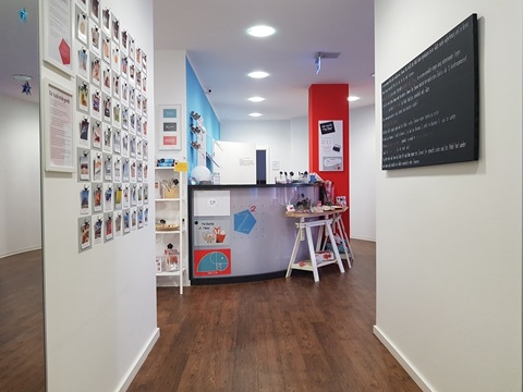 So stöberten wir ein wenig nach Exponaten, stellten schnell fest, dass nichts, das man so einfach kaufen konnte, unseren Vorstellungen genügte und da wir diesmal keine Abstriche machen wollten, fingen wir an zu planen, zu experimentieren und zu bauen. Und nach zwei Jahren öffnete "Ich mach Mathe!" am 21.10.2018 zum ersten Mal die Türen - mit knapp 100 m² Ausstellungsfläche und 34 Exponaten.