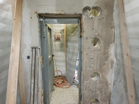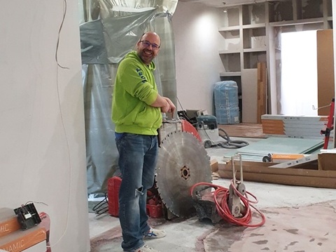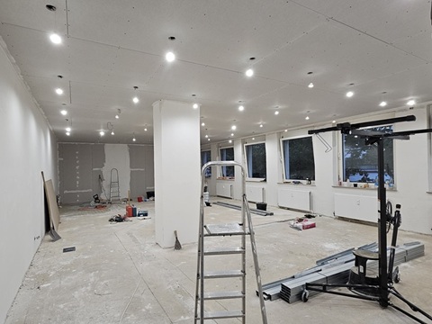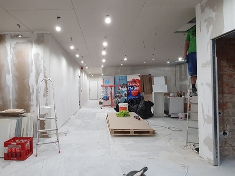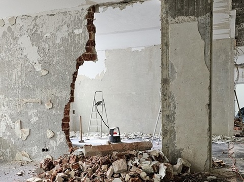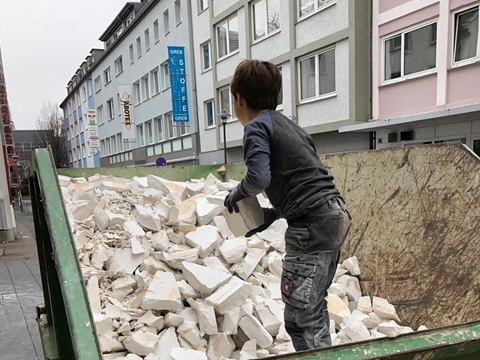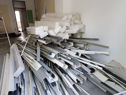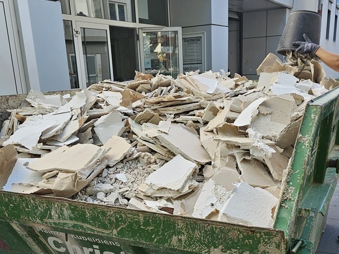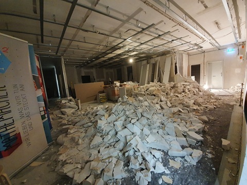 Wir entfernten insgesamt 14 t Wände, 1,2 t Kabel, Unmengen an Fliesen, über 400 m² PVC, sowie etliche Türen, Lampen und Deckenplatten. Und dann bauten wir alles wieder neu auf.