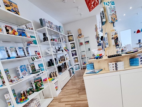Der Museumsshop wuchs stetig – mittlerweile gibt es dort nicht nur spannende mathematische Knobelspiele, sondern auch eine große Auswahl an mathematischen Brettspielen.